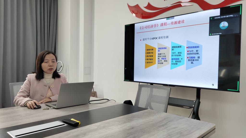 交流会上,省级一流线上线下混合式课程《公司经济学》负责人刘晓红老师和省级一流国际化课程《国际经济学》负责人张兴泉老师进行了汇报。刘晓红重点从一流课程的建设要求、《公司经济学》的建设情况,以及课程建设的成效与体会三个方面,系统全面的分享了课程建设的经验与成果,主要体现为:课程网站教学资源丰富,课堂教学模式新颖,PBL项目促进“探究式”学习,教学效果显著提升,课程深受学生喜爱。张兴泉围绕《国际经济学》课程的线上资源整合、课程思政,以及教学效果提升等方面,展示了课程取得的一系列中期成果,尤其是针对留学生的课程思政,将中国故事、中国智慧和中国经验与理论教学有机融合,撰写的教学论文《基于PBL的经济学科双语课课程思政改革探索与实践》荣获省高等教育学会课程思政教师征文比赛特等奖,充分体现了国际化课程建设的突出特色。
