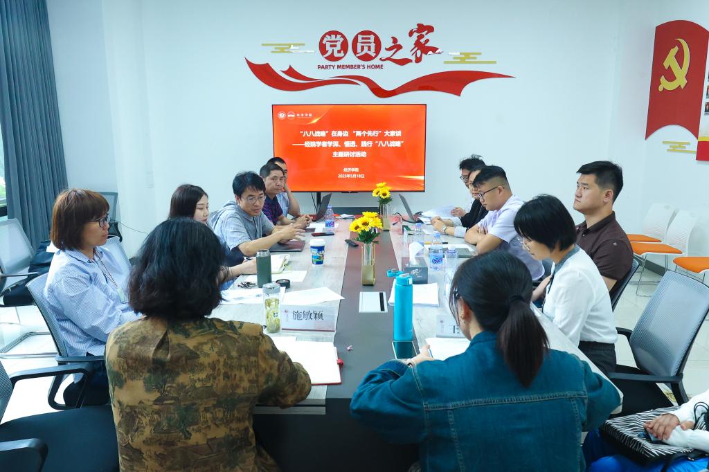 组织各系、各教师党支部开展“‘八八战略’在身边‘两个先行’大家谈——经院教师学深、悟透、践行‘八八战略’主题研讨活动”,学院教师在学习领悟、科学研究、决策咨询和社会服务基础上,用学术研究方式分享和交流各自关于“八八战略”与“两个先行”相关研究成果。