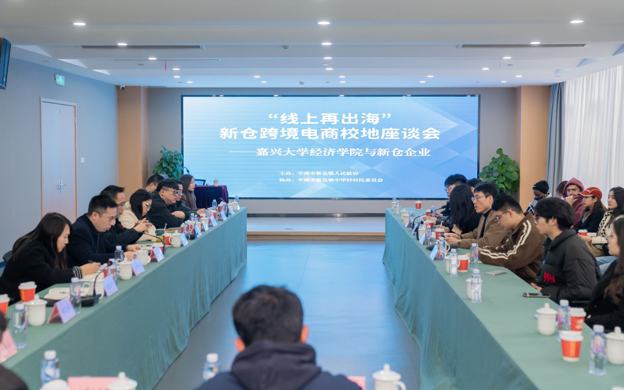 国际教育与交流中心主任王焕祥带校国际化专业(国际经济与贸易)国际生、跨境电商专业学生赴平湖市新仓镇开展跨境电商品牌出海校地交流活动。新仓镇副镇长沈斌出席座谈会。