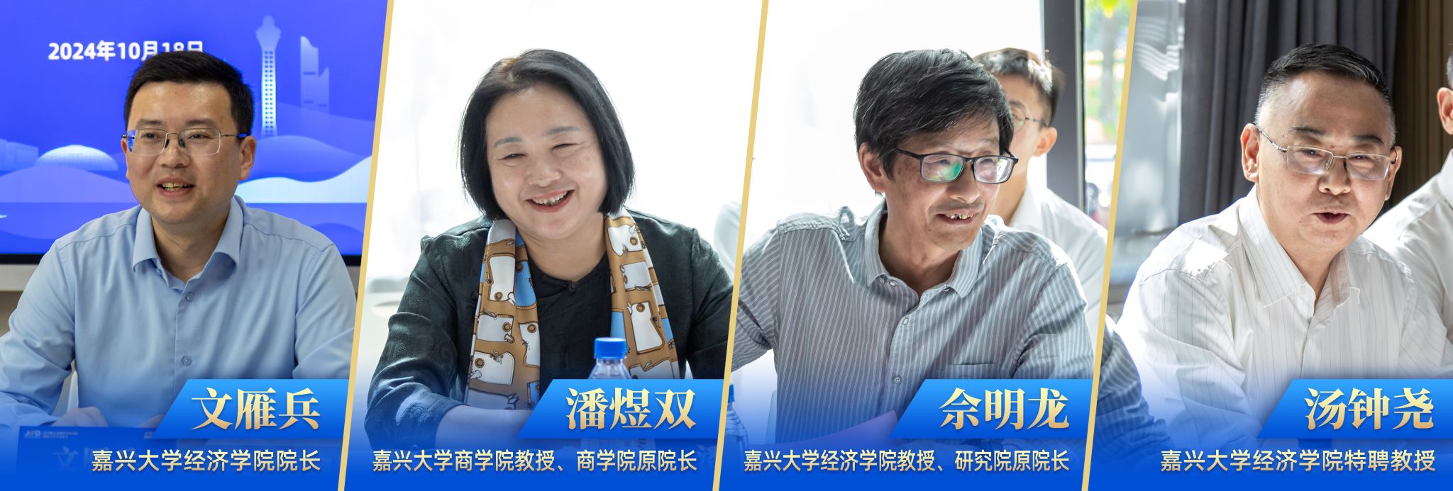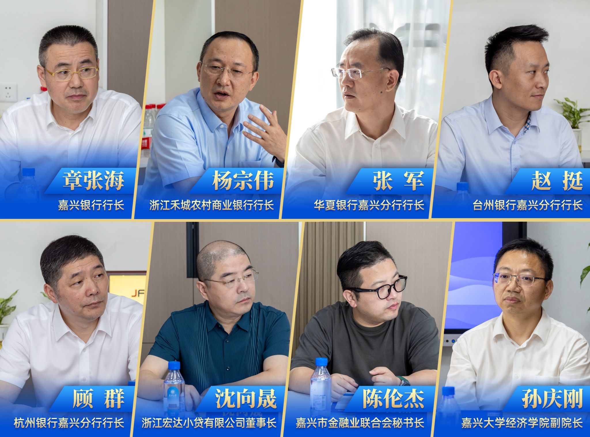 党委书记沈希,嘉兴市政协经济委员会主任沈玉良,嘉兴银行行长章张海,浙江禾城农村商业银行行长杨宗伟,华夏银行嘉兴分行行长张军,台州银行嘉兴分行行长赵挺,杭州银行嘉兴分行行长顾群,浙江宏达小贷有限公司董事长沈向晟,嘉兴市金融业联合会秘书长陈伦杰,学校人文社科处、黑料不打烊