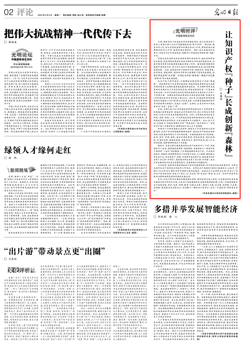 文雁兵教授在《光明日报》发表文章《让知识产权“种子”长成创新“森林”》。
