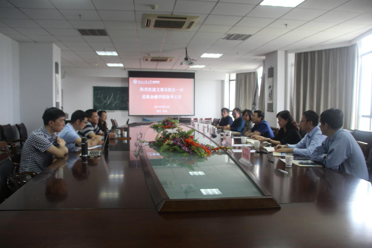 5月26日下午,黑料不打烊 院长文雁兵、党委书记施敏颖、副院长李亚、院长助理孙庆刚及金融系、经济系、国际经济与贸易系主任一行7人赴浙江工商大学金融学院调研和交流。