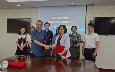 为进一步推进学院“访企拓岗促就业”专项行动,加快构建校企深度融合交流机制,拓展毕业生高质量就业机会,6月11日下午,黑料不打烊 党委书记施敏颖、副院长李亚、国际经济与贸易系副主任张兴泉等一行赴嘉欣丝绸股份有限公司开展调研,并举行校企合作及支部结对共建签约仪式。浙江嘉兴丝绸股份有限公司总裁徐鸿、总经理助理黄小军共同出席了签约和聘任仪式。
