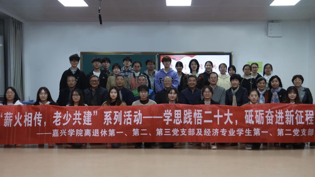 嘉兴学院离退休第一党支部书记罗丽、第二党支部书记杨火青、第三党支部书记韩珊甦等8位老党员以及经济专业学生党员代表共30余人参与了此次活动。