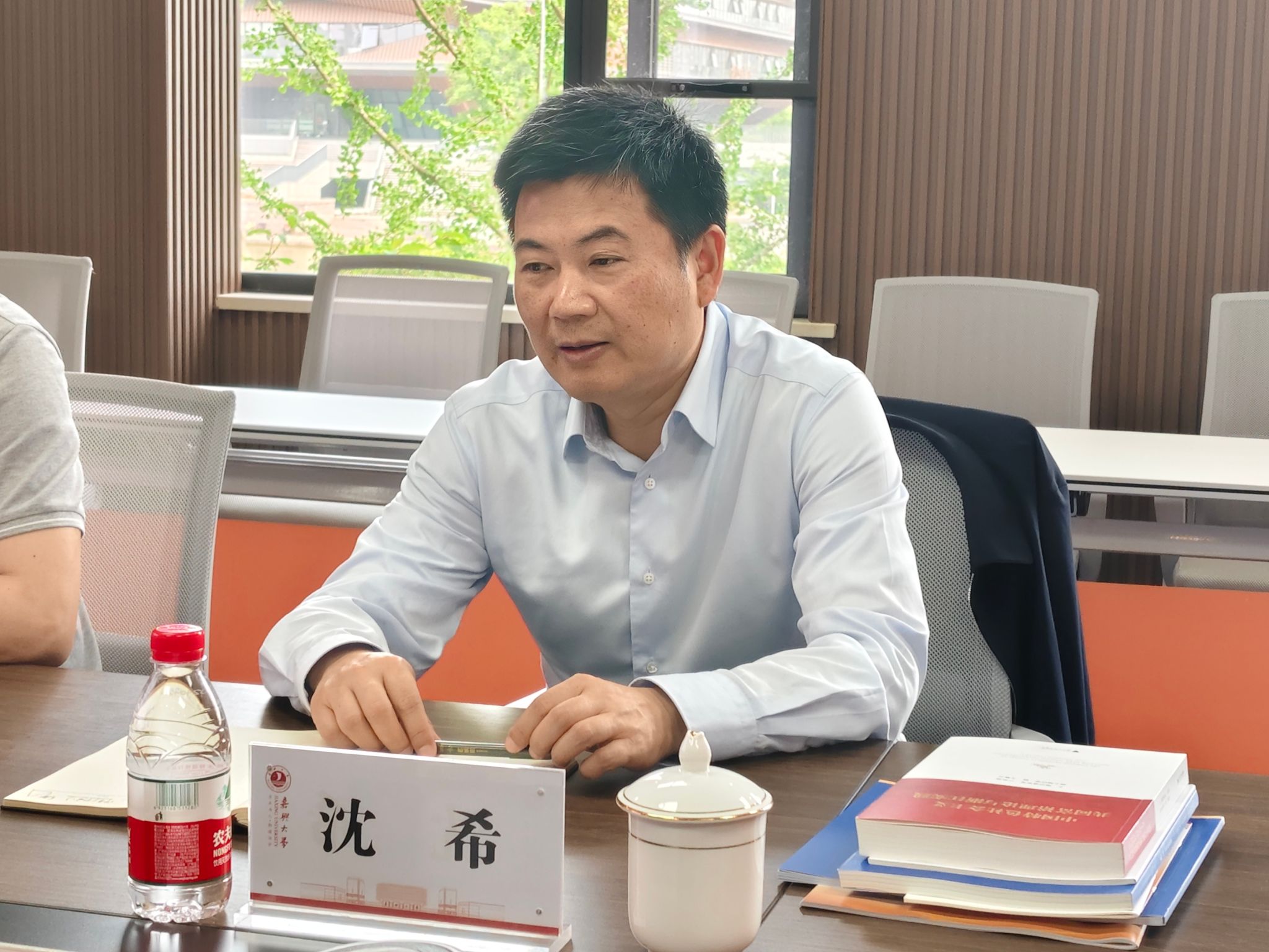 5月24日上午,校党委书记沈希带队来院调研走访和指导工作。