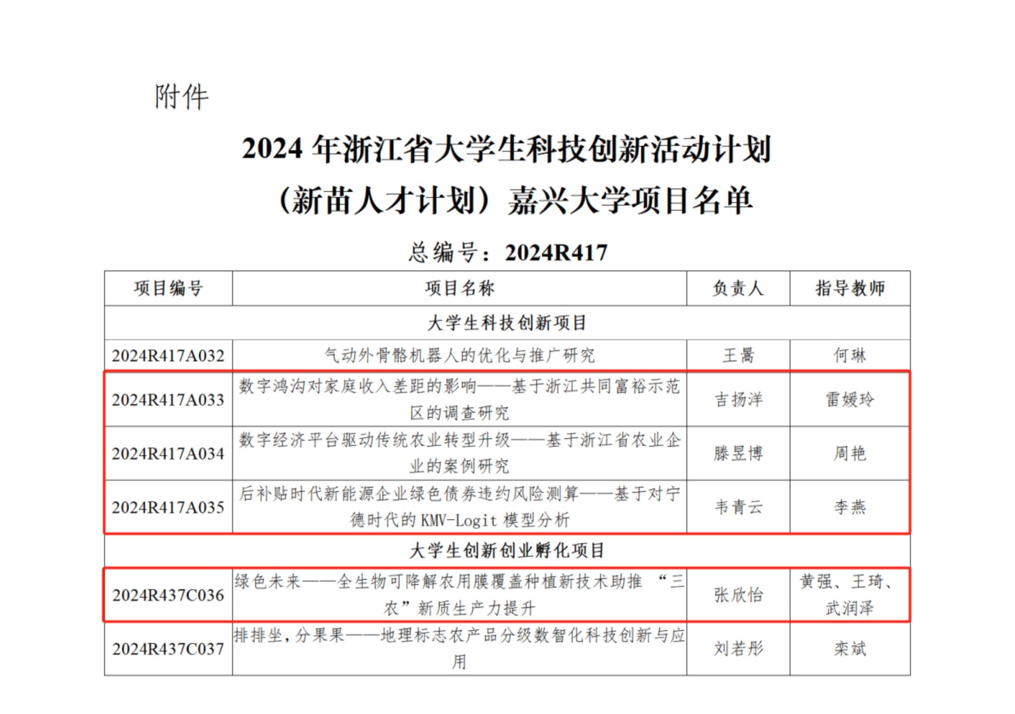 近日,浙江省大学生科技创新活动计划(新苗人才计划)实施办公室下发了《关于公布2024年浙江省大学生科技创新活动计划(新苗人才计划)立项结果的通知》,黑料不打烊 4项大学生科技创新项目成功立项。