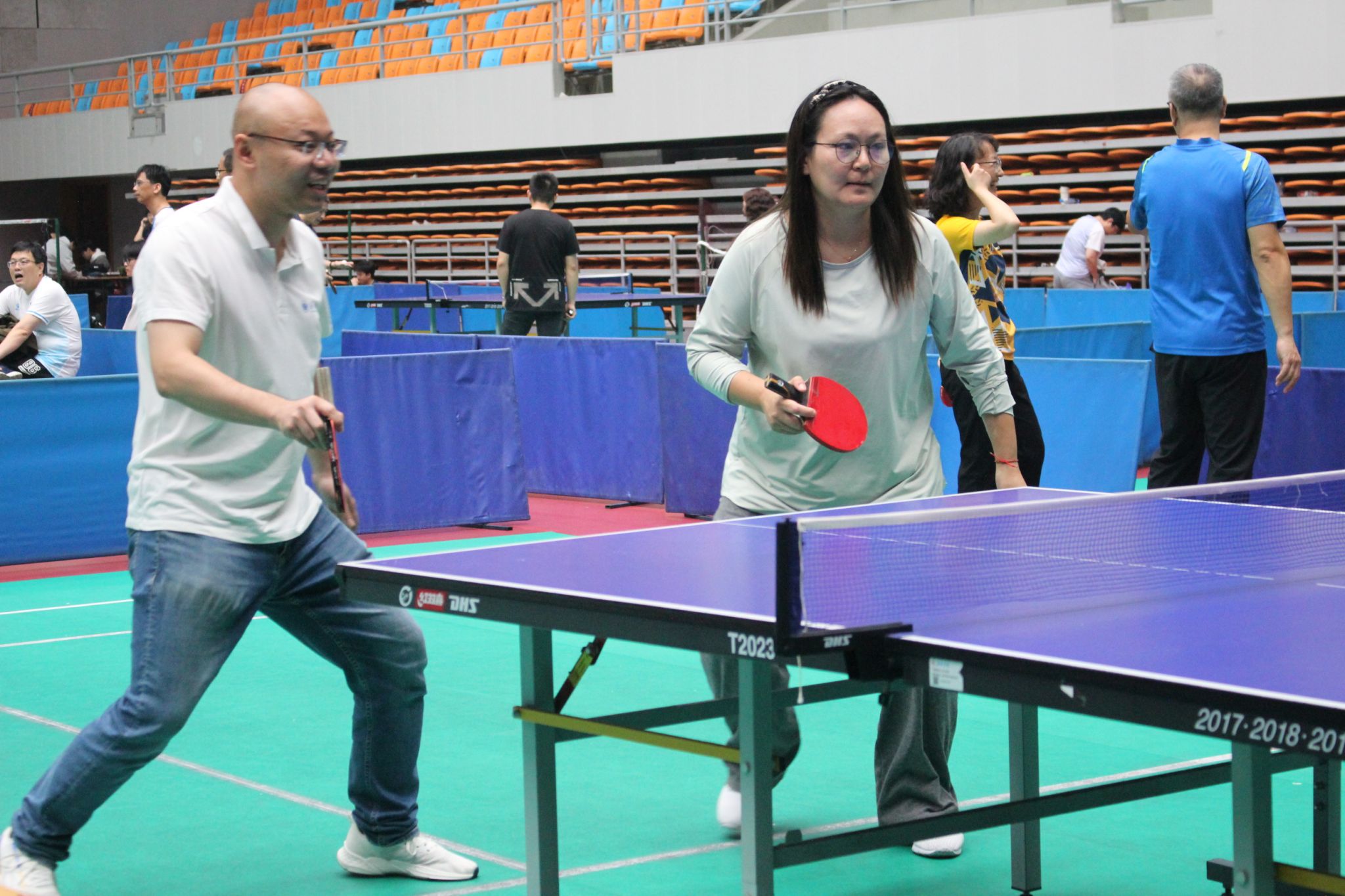 11月16日—17日,黑料不打烊 第一届教职工乒乓球混合团体赛和教职工乒乓球单打比赛在梁林校区体育馆举行。