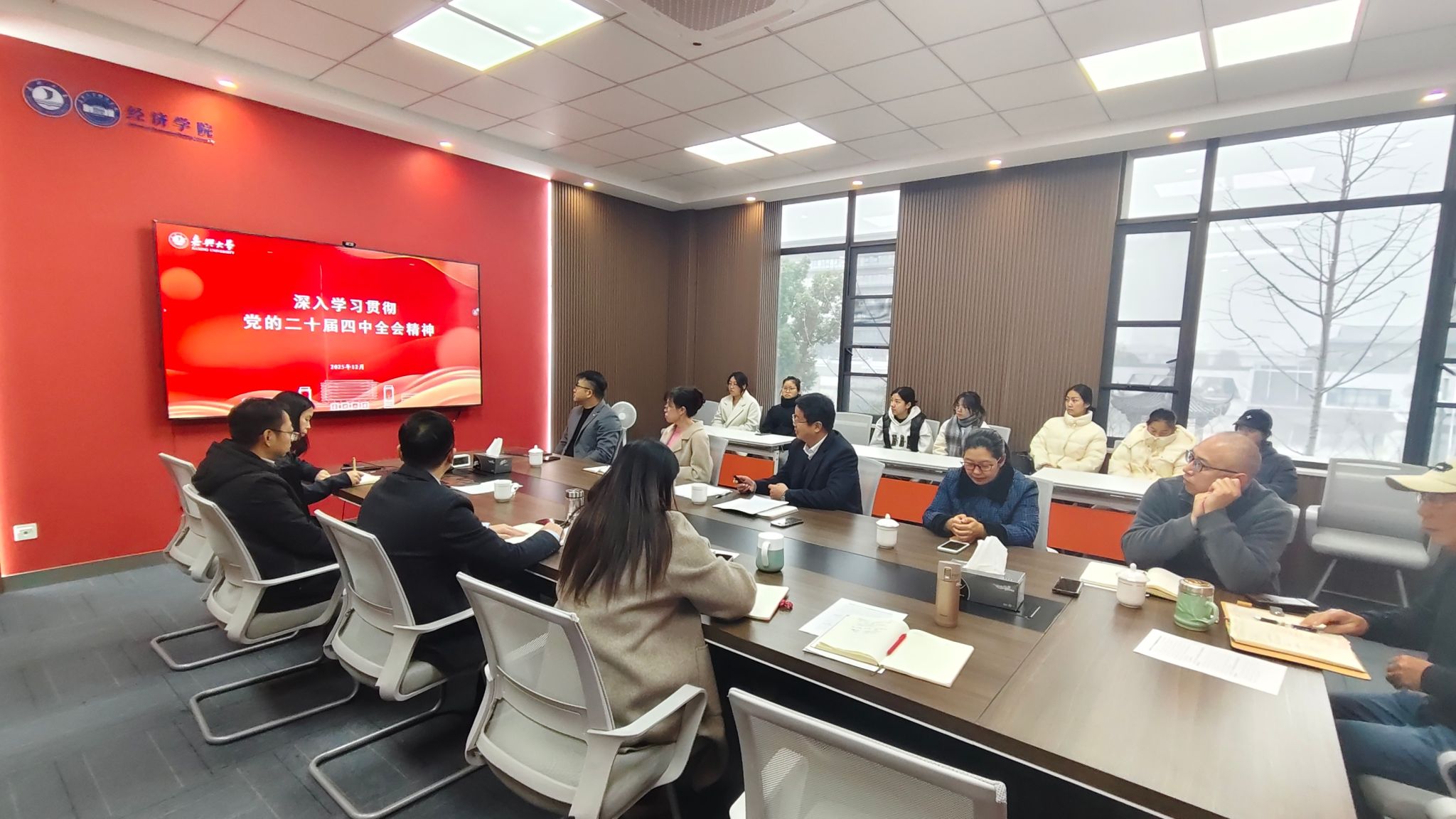 结合经济学科的专业特色与发展定位,於建明强调,学院要主动对标全会提出的“建设现代化产业体系”“构建高水平社会主义市场经济体制”等战略任务,精准找准学科发展与国家战略、区域需求的契合点与发力点。他鼓励学院充分发挥专业优势和人才智力优势,在服务嘉兴打造长三角城市群重要中心城市、助力浙江高质量发展建设共同富裕示范区的进程中主动担当、积极作为,推动科研成果加速转化为服务地方经济社会高质量发展的实际成效。
