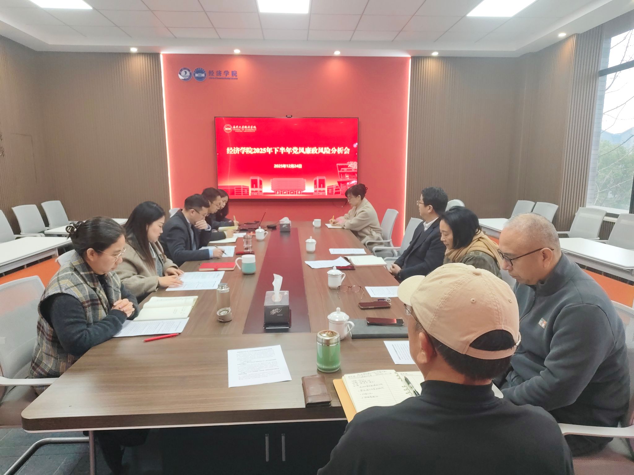 召开2025年下半年党风廉政建设情况分析会。副校长於建明应邀到会指导,联系校纪委委员、学院党政班子成员、党委委员、专职组织员、特约监察员参加会议,会议由学院党委书记蔡运男主持。
