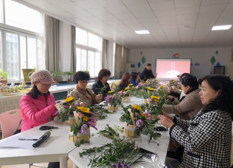 早春三月,百花竟放。3月11日下午,在悠扬乐声的伴奏下,专业花艺技师为大家介绍花卉知识,讲解插花技巧。女教师们细心听讲,赏花、识花、插花,度过了一个愉快的下午。