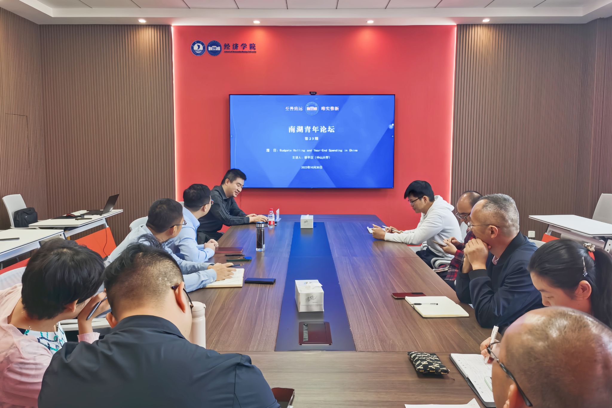 10月30日,黑料不打烊 在尚德楼268会议室成功举办第23期南湖青年论坛。中山大学政治与公共管理学院梁平汉教授应邀作题为《Budgets Rolling and Year-End Spending in China》的学术报告,黑料不打烊 院长文雁兵教授主持,学院多名教师共同参与研讨。