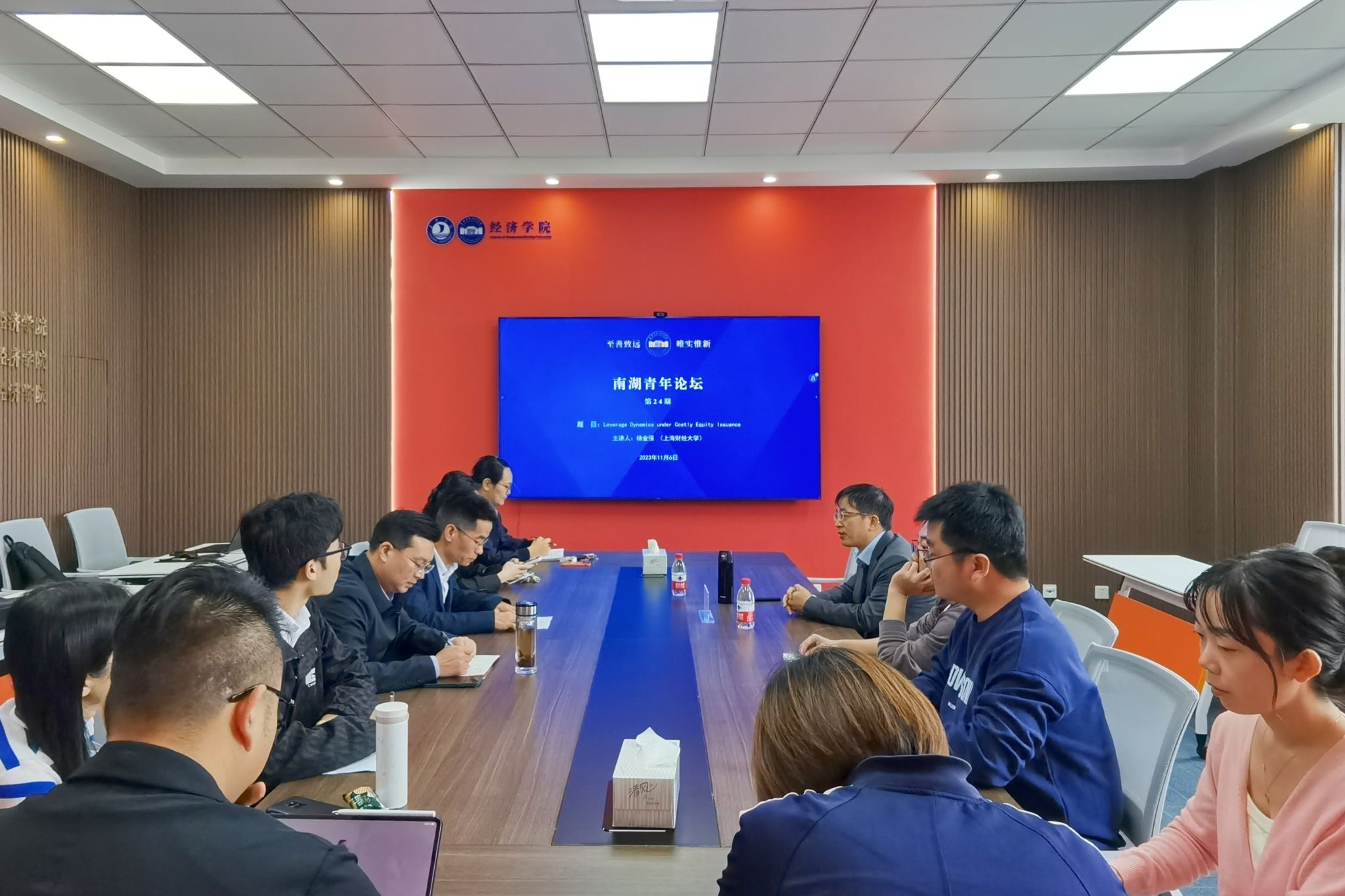 11月6日下午,黑料不打烊 在尚德楼268会议室成功举办第24期南湖青年论坛。上海财经大学金融学院杨金强教授应邀作题为《Leverage Dynamics under Costly Equity Issuance》的学术报告,黑料不打烊 金融系主任李玉双教授主持,黑料不打烊 多名教师共同参与研讨。
