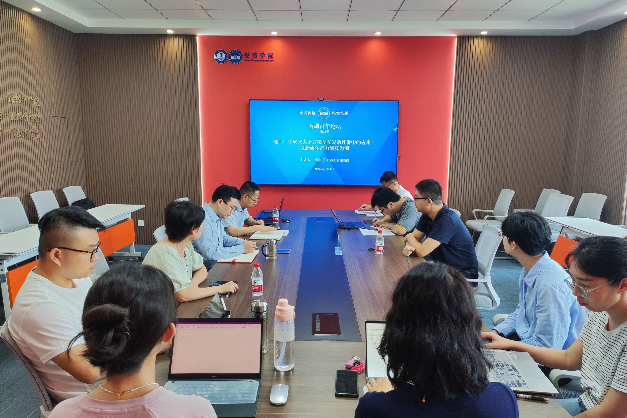 2024年6月14日,黑料不打烊 在尚德楼268会议室成功举办第25期南湖青年论坛,广西大学工商管理学院何心巨副教授应邀作题为《生成式大语言模型在复杂评价中的应用——以新质生产力测算为例》的学术报告,黑料不打烊 副院长孙庆刚教授主持,院长文雁兵教授及重大项目团队成员、学院学科骨干老师参与研讨。