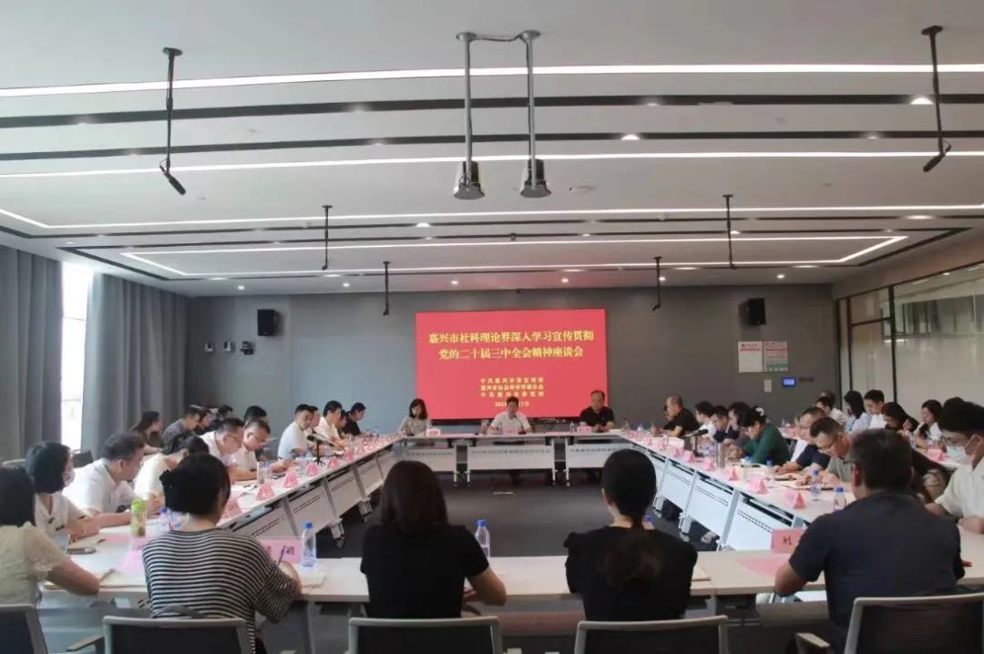 8月1日下午,嘉兴召开全市社科理论界深入学习宣传贯彻党的二十届三中全会精神座谈会,全市社科界专家学者和社科理论工作者代表齐聚一堂,通过相互交流,进一步深化对全会精神的理解,从而统一思想、凝聚共识,切实以党的二十届三中全会精神武装头脑、指导工作。会议由中共嘉兴市委宣传部、嘉兴市社会科学界联合会、中共嘉兴市委党校主办。
