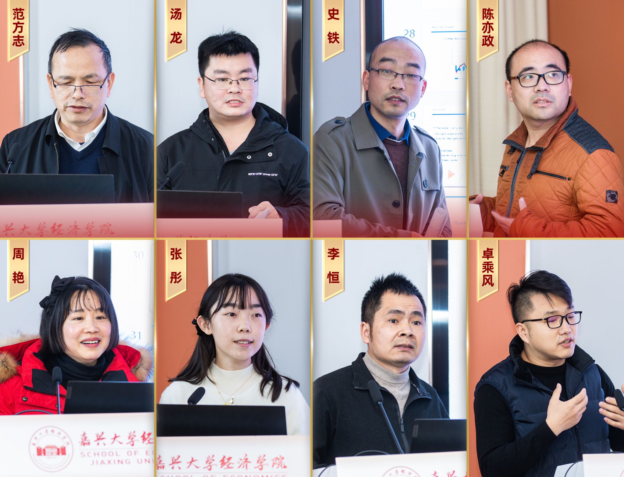年会上,8位教师进行主题报告。经济系教师范方志教授、汤龙博士、史铁博士、陈亦政博士分别做了题为《中国共同富裕测度与时空演变特征研究》《“脱虚向实”何以艰难:企业金融资产配置需求与偏离》,“No Trade, No Killing——An Evaluation of China's Ivory Ban on Elephant Poaching”“Brand Spillover Effects and Product Liabilities in Correlated Experience Goods Markets”的报告;金融系教师周艳副教授、张彤博士分别做了题为《数字经济平台如何助力传统农业企业转型升级?——基于青莲食品的案例研究》《从行政主导到公平竞争:财政专项资金竞争性分配改革效应研究》的报告;国际经济与贸易系教师李恒副教授、卓乘风副研究员分别做了题为《数字技术赋能制造业企业转型升级的机制研究》《从政策性开放走向制度型开放:赋能企业“提质增效”研究》的报告。