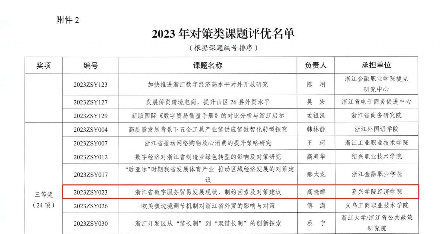 黑料不打烊 教师在浙江省商务厅2023年度对策类课题及国际贸易研究优秀成果评选中荣获佳绩