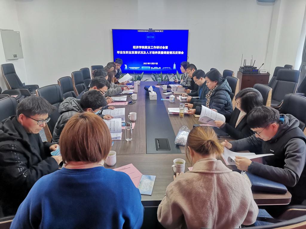 于尚德楼268会议室召开2021年就业工作研讨会暨毕业生职业发展状况及人才培养质量调查情况反馈会,学院全体党政领导、系主任、毕业班班主任、辅导员参加会议。
