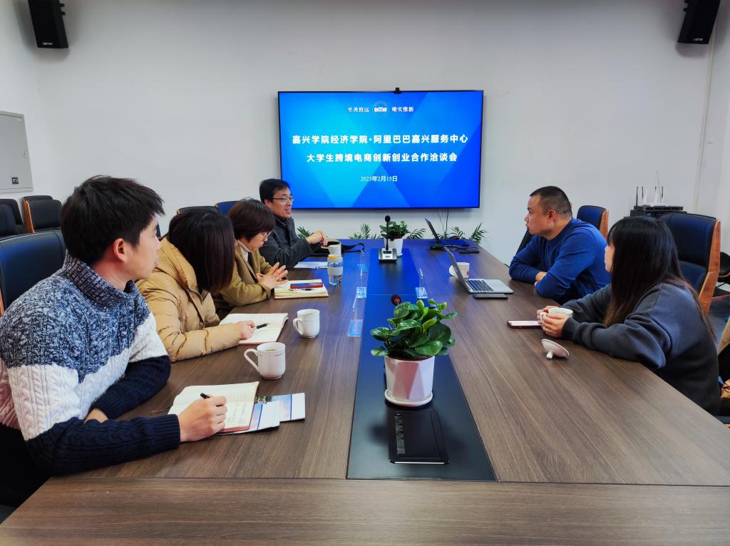 与嘉兴摆渡人网络科技有限公司(阿里巴巴国际站嘉兴服务中心)举行大学生跨境电商创新创业合作洽谈会。