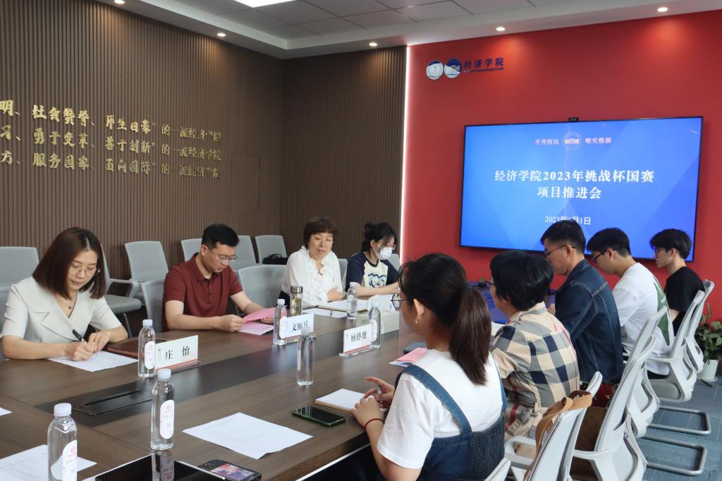 进一步推动第十届“挑战杯国大学生课外学术科技作品竞赛的备赛工作61日,黑料不打烊 2023年“挑战杯国赛项目推进会在尚德楼268召开,黑料不打烊 院长文雁兵、党委副书记庄美燕、指导教师、团干部、学生代表参加会议。