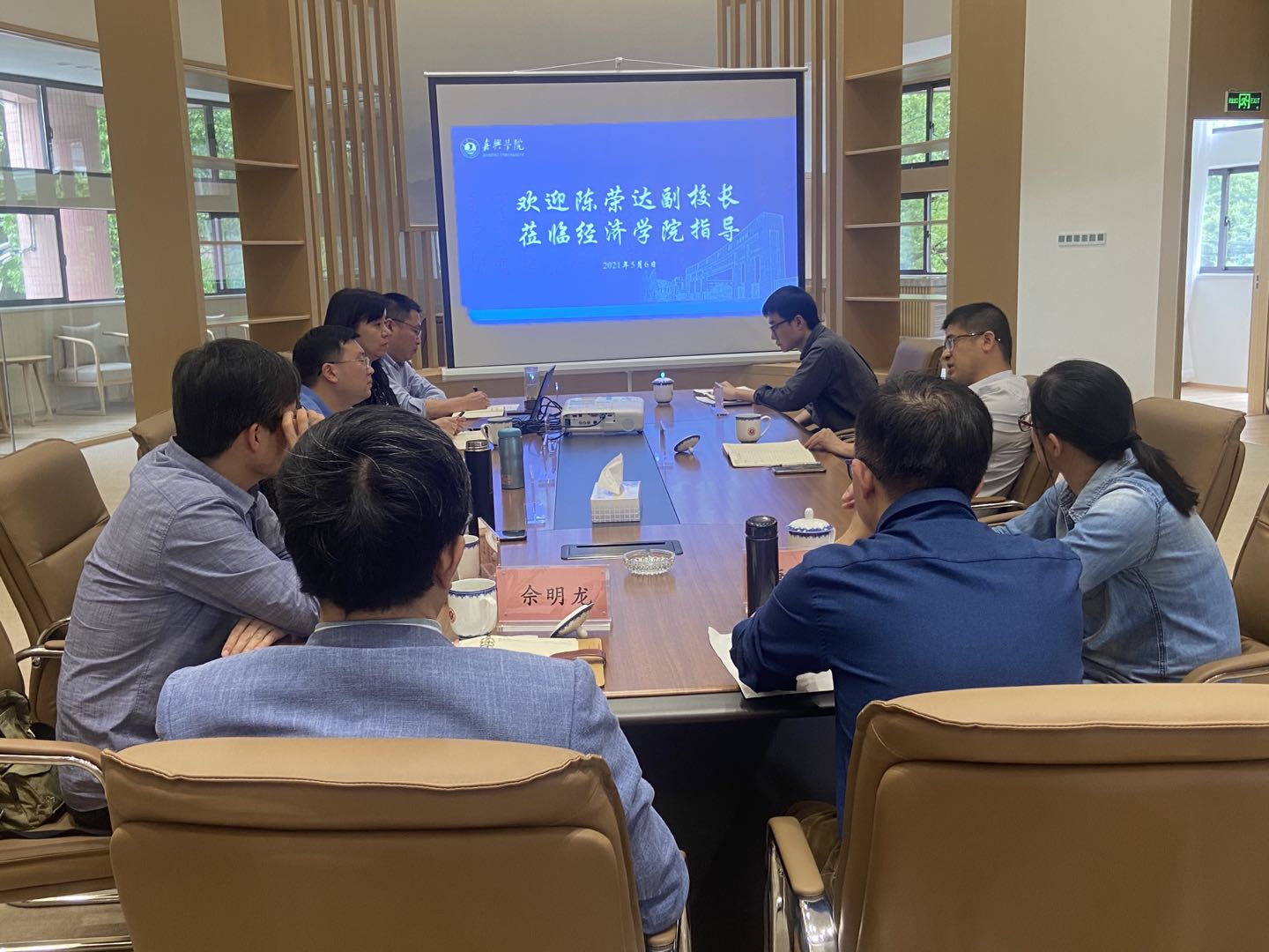 发展情况,重点汇报了学院师资、应用经济学学科建设、人才引进、科研团队、成果申报、硕士学位点培育情况,院党委书记施敏颖就学院党建和文化建设工作进行汇报,班子其他成员以及系主任们也就分管工作和系部工作做了补充汇报。