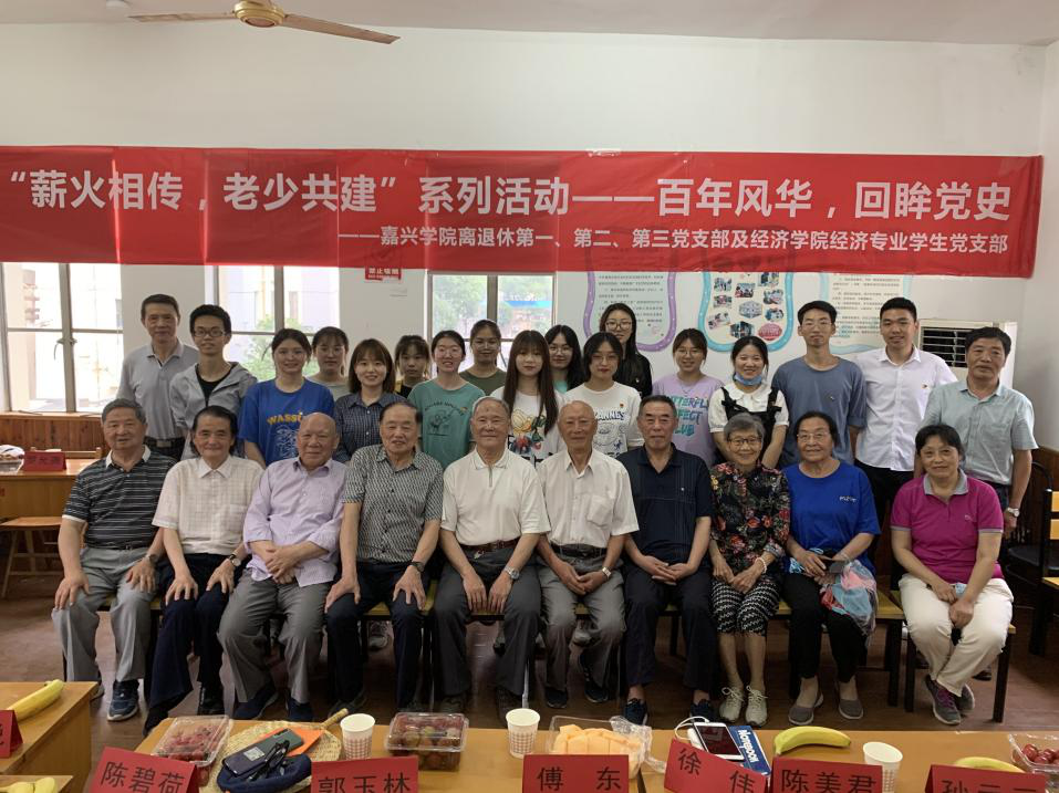 6月13日下午,我校离退休党支部和经济专业学生党支部联合开展“百年风华,回眸党史”主题学习教育活动。校党委原副书记、红船精神研究中心主任吕延勤,离退休党工委书记、处长杨芬芬,经济专业学生党支部书记梅嘉琦、离退休老党员及学生党员共60余人参加活动。