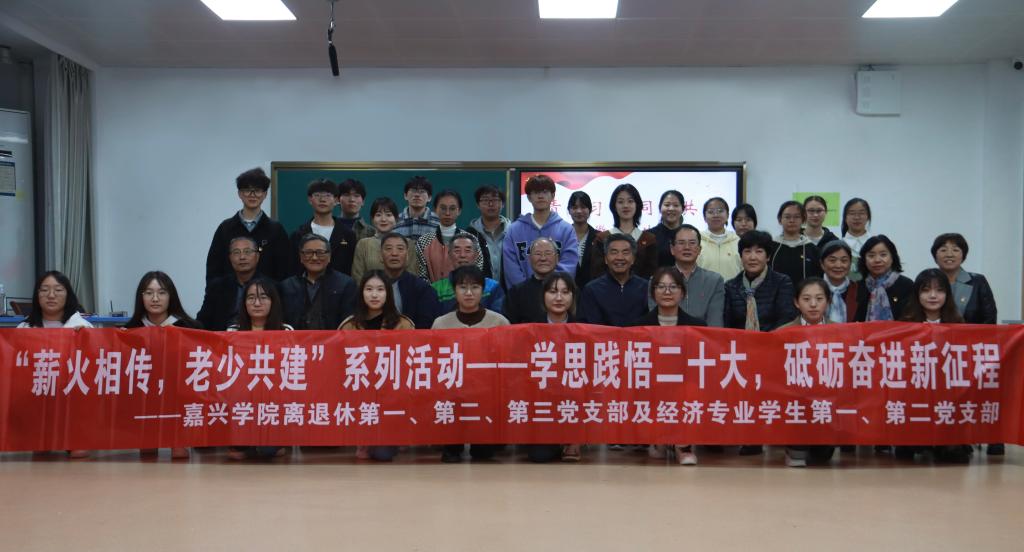 嘉兴学院离退休第一党支部书记罗丽、第二党支部书记杨火青、第三党支部书记韩珊甦等8位老党员以及经济专业学生党员代表共30余人参与了此次活动。