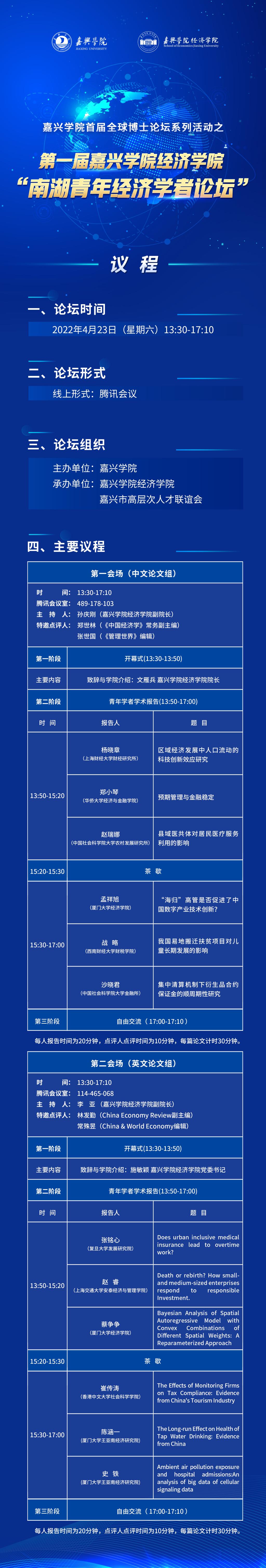 【会议通知】第一届嘉兴学院黑料不打烊 “南湖青年经济学者论坛”