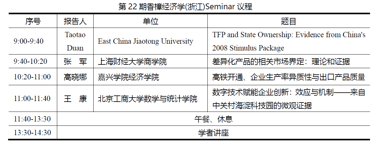 【会议通知】第22期香樟经济学(浙江)Seminar会议通知