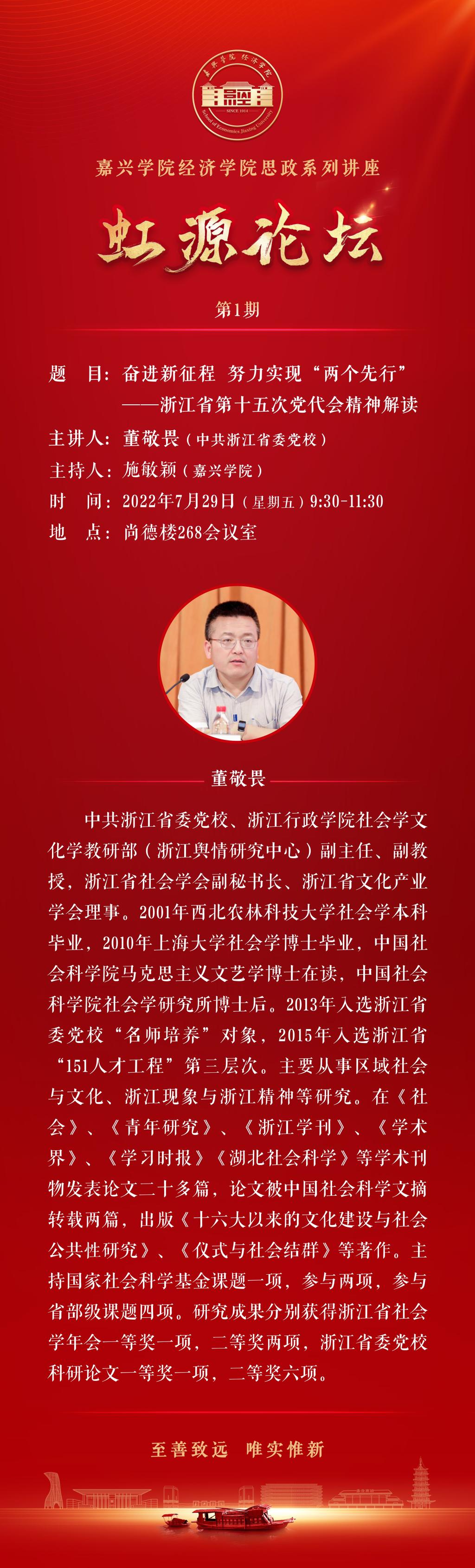 虹源论坛第1期:奋进新征程努力实现“两个先行”——浙江省第十五次党代会精神解读